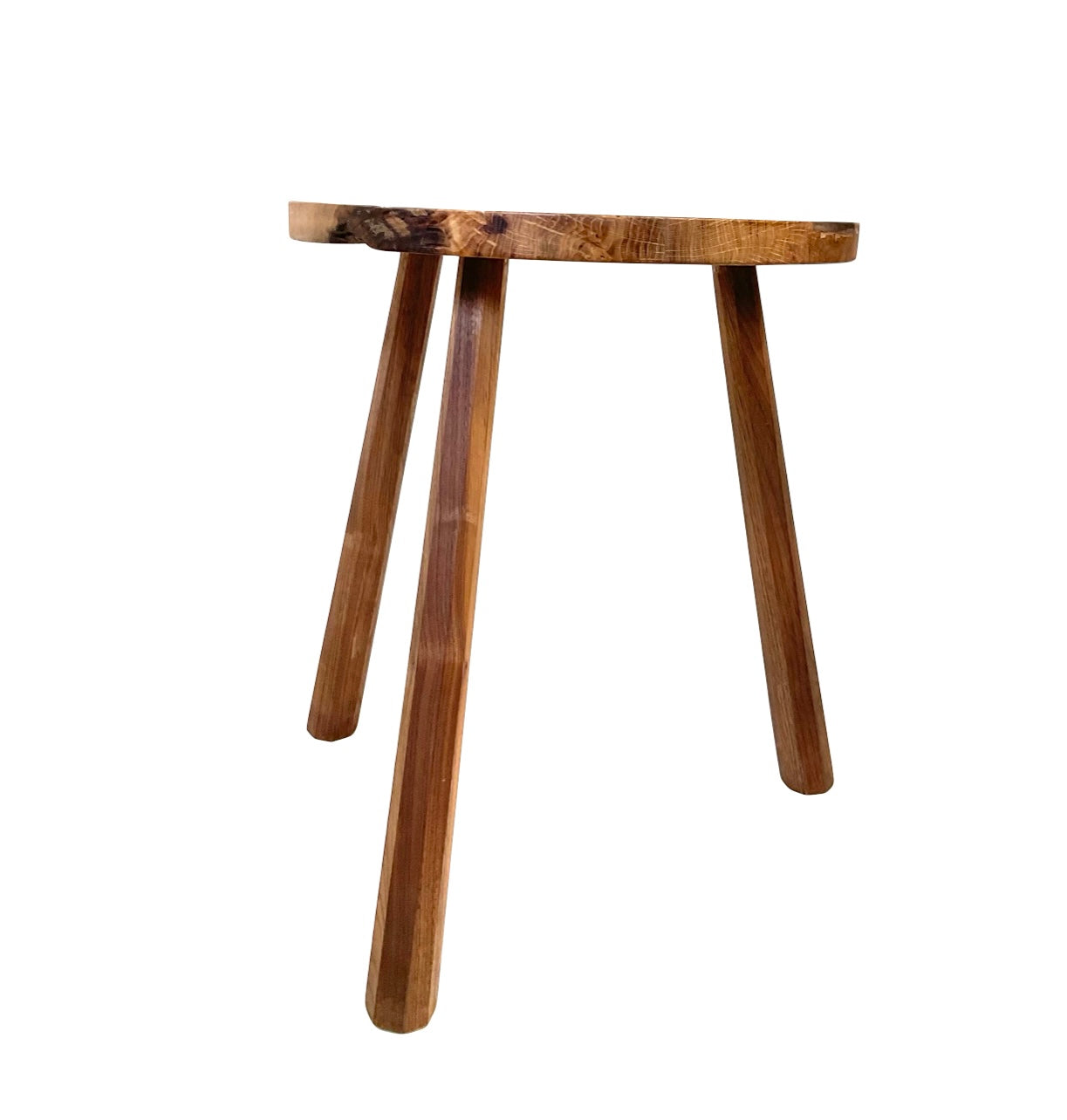 Made using mainly hand tools, these stools /side tables are available in English Oak. These individual pieces are made from trees locally felled which have been stored in a barn in Suffolk for the past 30 years. Each one has been shaped by hand to reveal the natural grain and character of the timber. Made from English Oak, the legs are planed to a tapered octagonal shape from English walnut fixed with traditional oak wedges. Each piece is hand made so no two will be the same.